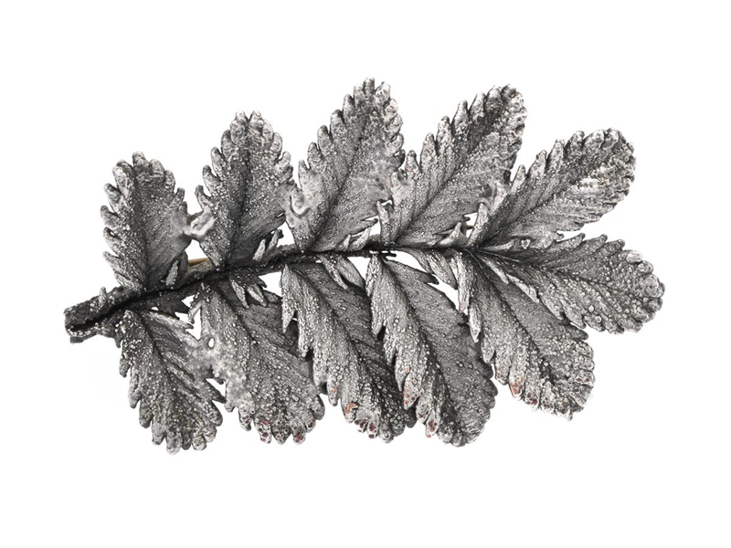 BROSCH, silver, löv, längd 5 cm, höjd 3,2 cm, vikt 7,6 g.