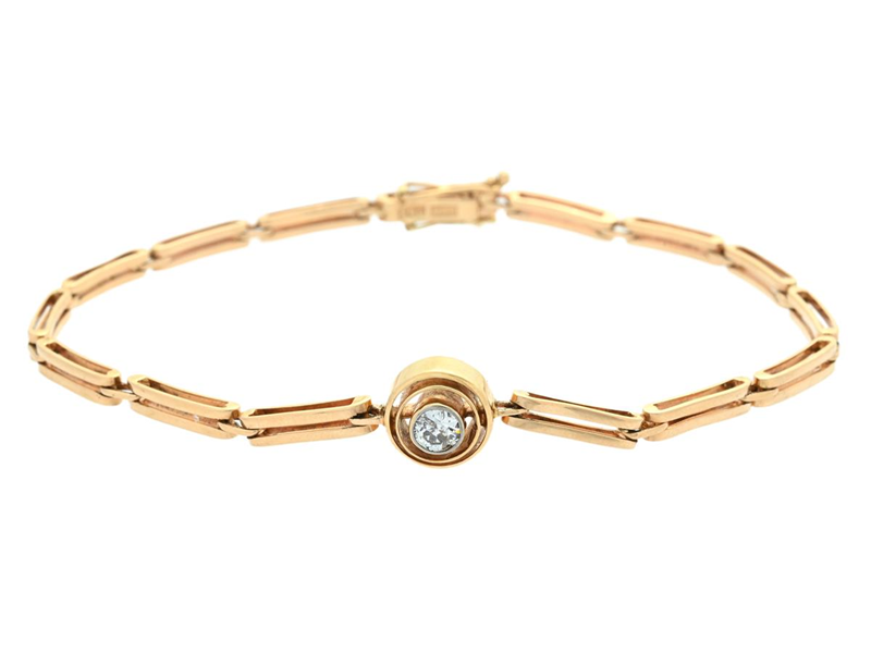 ARMBAND, 18K guld, gammalslipad diamant ca 0,15 ct, ca TCr/P, längd ca 19,5 cm, vikt 7,9 g, diamanten har ytskador.