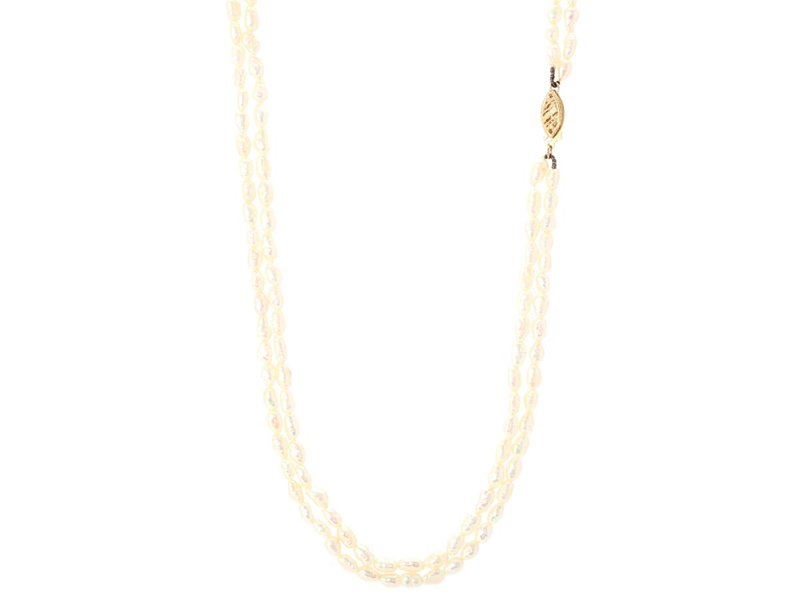 PÄRLCOLLIER, 2-radigt, odlade barocka sötvattenspärlor ca 5,5x3,5 mm, lås i 14K guld, längd 81 cm, vikt 26,2 g.
