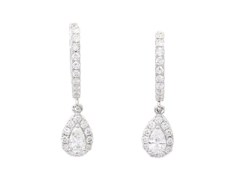 ÖRHÄNGEN, 18K vitguld, 2 droppslipade diamanter 0,29 ctv,42 briljantslipade diamanter 0,39 ctv, ca TW-TCr/VS-P, höjd 23 mm, vikt 2,8 g, stift.