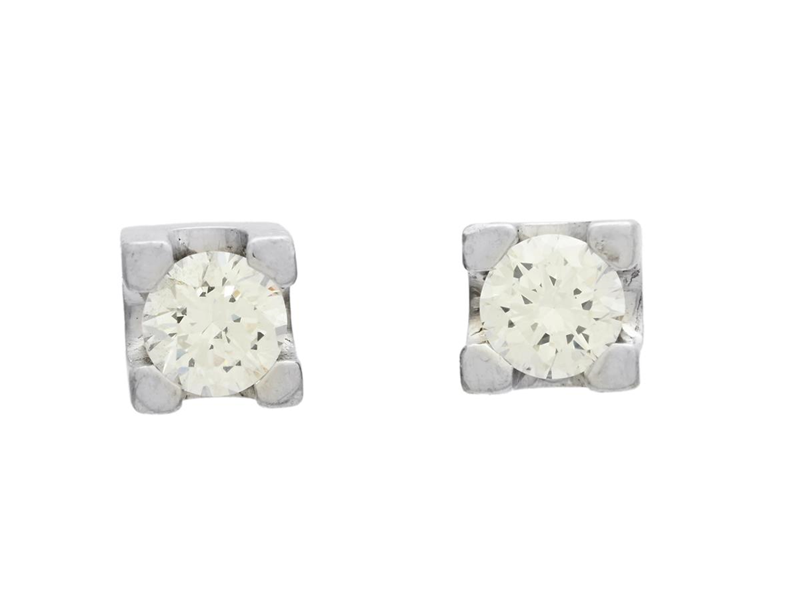 ENSTENSÖRHÄNGEN, 18K vitguld, 2 briljantslipade diamanter ca 0,50 ctv, ca TW/VS, vikt 2,8 g, stift, nagg på kuletterna.