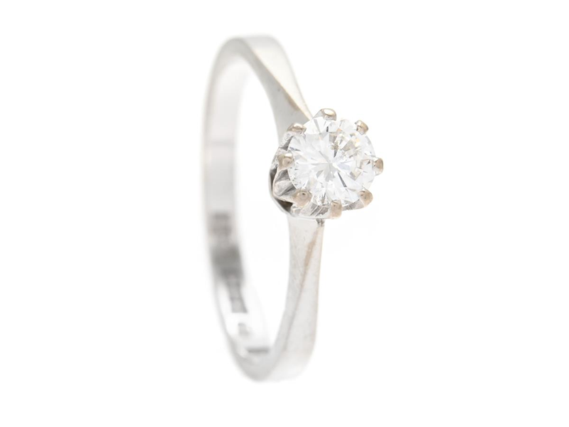 ENSTENSRING, 18K vitguld, briljantslipad diamant 0,34 enligt gravyr, ca TW/VS, stl 16,25+ mm, vikt 2,4 g. gravyr.