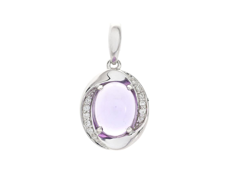 HÄNGE, 18K vitguld, cabochonslipad ametist, 12 briljantslipade diamanter ca 0,06 ctv, höjd 20 mm, vikt 2,9 g.