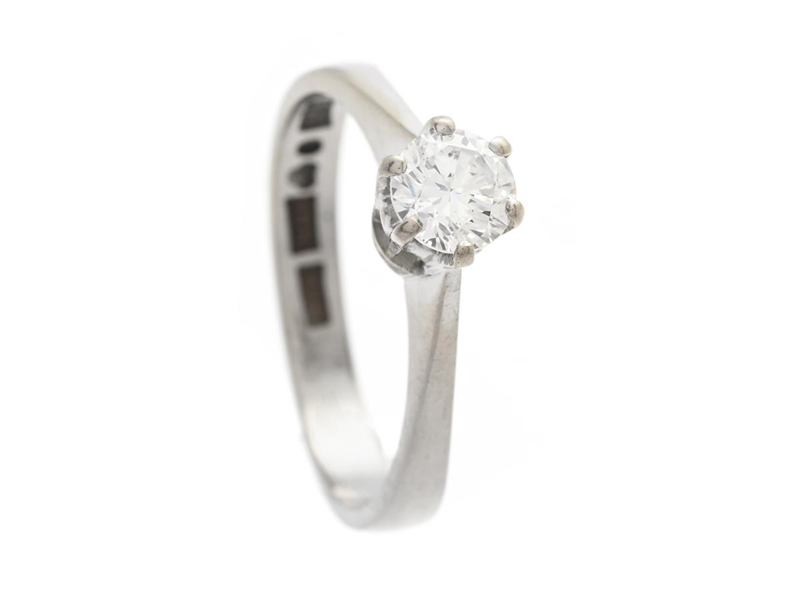 ENSTENSRING, 18K vitguld, briljantslipad diamant 0,46 ct, ca R/SI, Stockholm 1978, stl 17,0 mm, vikt 3,3 g, natural på rondisten.
