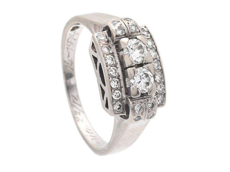 RING, 18K vitguld, briljant- och åttkantslipade diamanter 0,53 ctv enligt gravyr, ca TWVS, G Dahlgren & Co, Malmö 1974, stl 18,25 mm, vikt 6,8 g, slitna fattningar, gravyr.