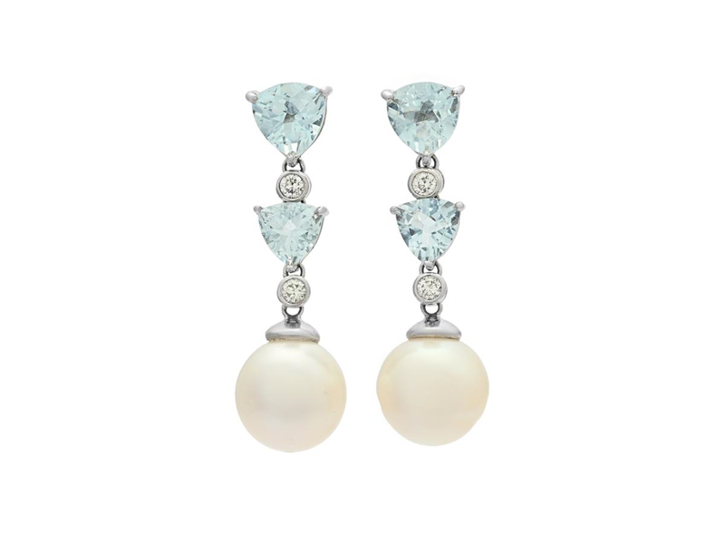 PÄRLÖRHÄNGEN, 18K vitguld, odlade pärlor, akvamariner, 4 briljantslipade diamanter ca 0,20 ctv, ca W/SI, höjd 40 mm, vikt 11,3 g, stift.