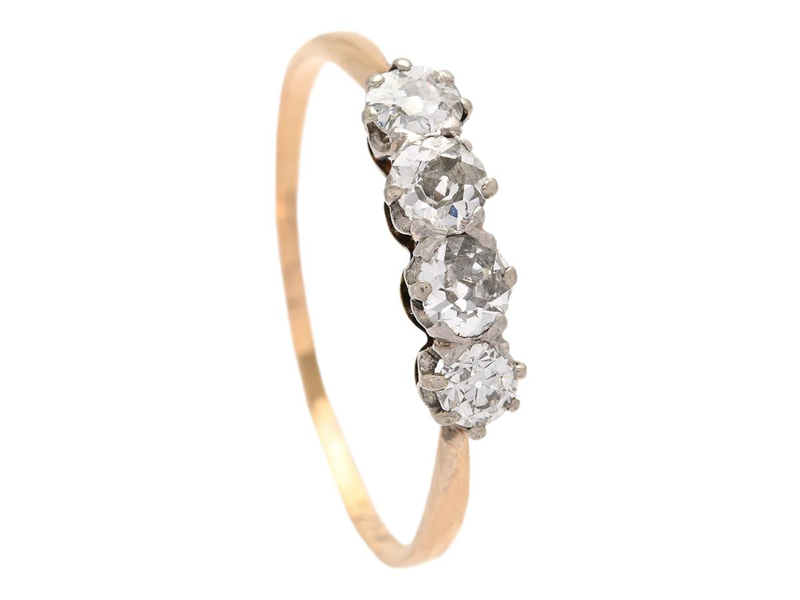 RING, 18K guld/vitguld, 4 gammalslipade diamanter ca 0,55 ctv, ca TW-W/VS-SI, stl 19,5 mm, vikt 1,9 g, en diamant har större natural vid kronan, nagg på rondisterna hos diamanterna.