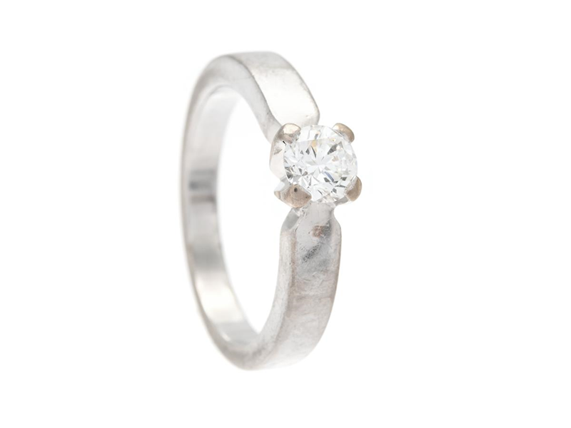 ENSTENSRING, 18K vitguld, briljantslipad diamant ca 0,46 ct, ca TW/SI, stl 17,5 mm, vikt 6,3 g, fasettkanter med slitage.