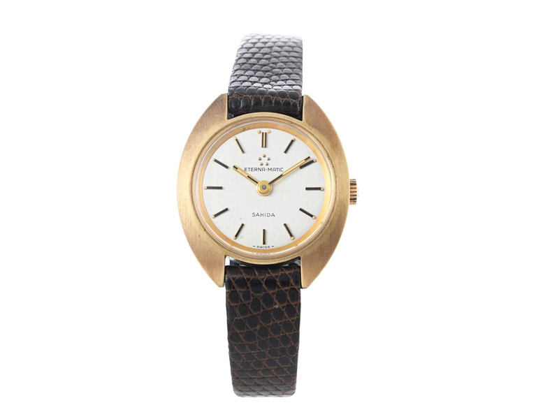 ETERNA-MATIC, Sahida (-Swiss-), Cal 12670-1B, Ref nr. 563.2047.43, damur, 25 mm, guld på stål, automatisk, plexiglas, läderband, originalspänne i doublé, ca 1965.