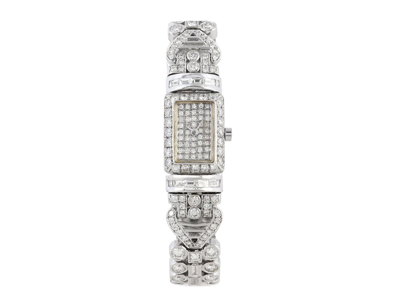 ROYAL FAMILY, "Ateljeur", damur, 15 x 21 mm, 18K vitguld, quartz, mineralglas, diamanter på urtavlan, briljanter på boetten (24 st. TW/VS-SI, ca 1,00 ctv), länk med briljanter och baguetter (132 st. TW-TCr/VS-SI, ca 10,00 ctv), längd 175 mm, totalvikt 64,2 gram, ca 2000.