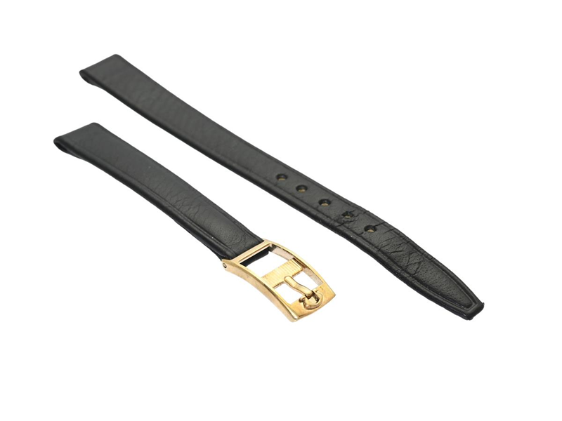 LÄDERBAND, till Omega damur, svart, 10 mm, originalspänne i gulmetall.
