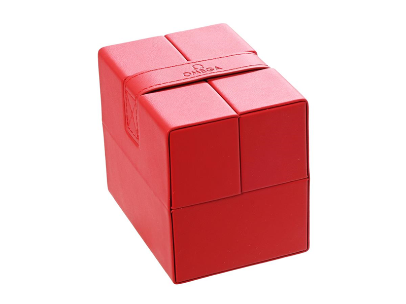 SERVICEETUI, till Omega armbandsur, röd, 100 x 90 x 75 mm, ca 2020.