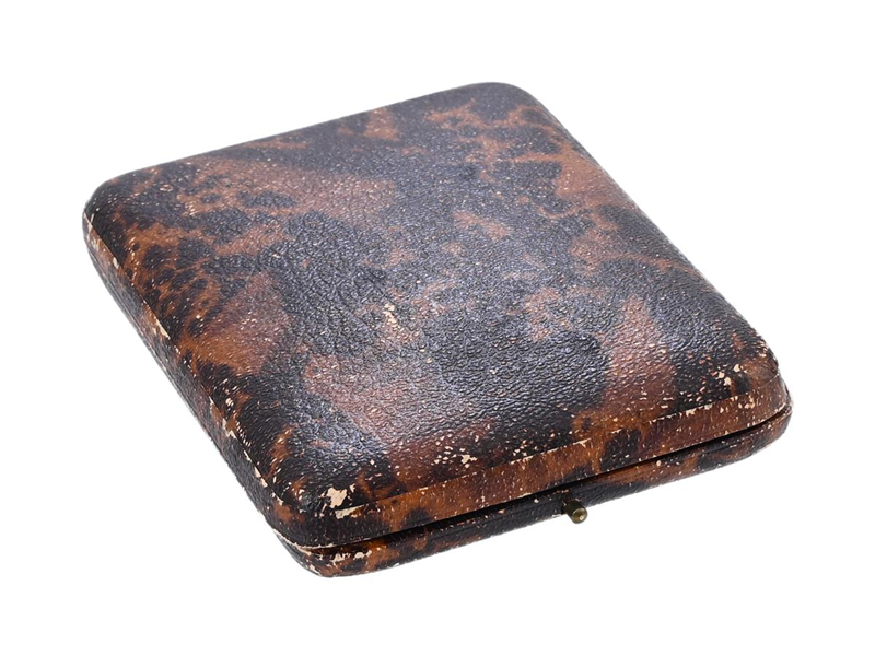 ETUI, "Edv. Johanssons Ur & Guldsmedsaffär, Tierp", till fickur, brunt, 98 x 120 x 25 mm, skadat.