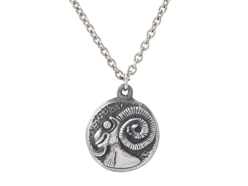 HÄNGE MED KEDJA, vitmetall/tenn, motiv av vädur, Nr. 623, Norge, vikt 14,5 g.