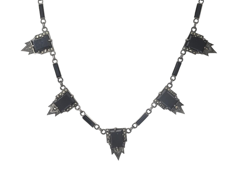 COLLIER, silver, markasiter och svart sten, längd 40 cm, vikt 17,3 g.