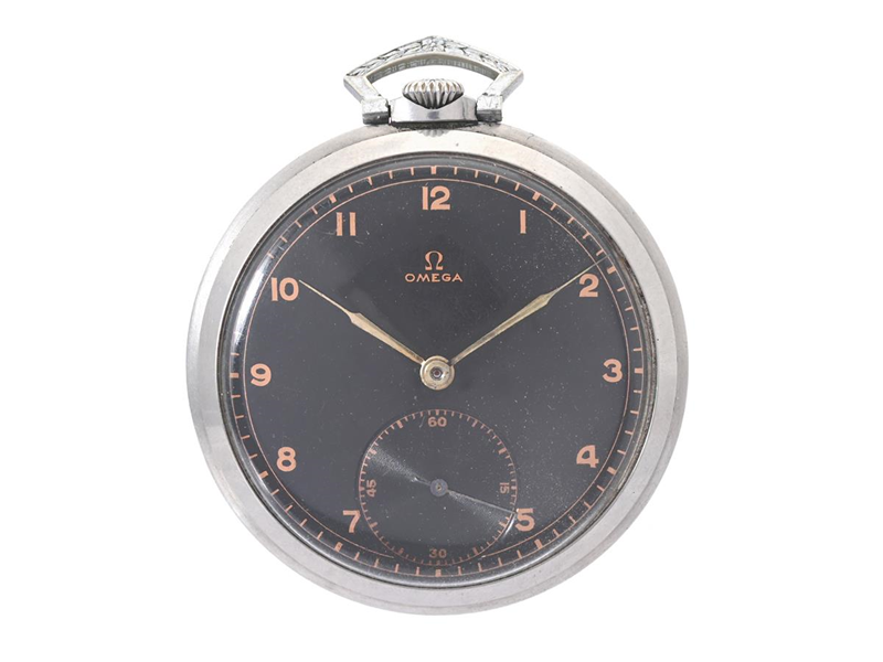 OMEGA, frackur, 47,5 mm, Cal 38.5L T1, Serie nr. 9094139, Boett nr. 9472361, stål (Staybrite), ankargång, defekt (går ej), ca 1938.