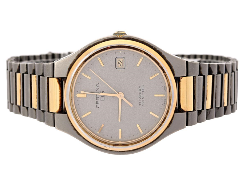 CERTINA, DS, Titanium, Boett nr. 113.7060/7260.11M, herrur, 34 mm, titan/doublé, quartz (går ej), safirglas, datum, integrerad originallänk, viklås, ca 1990.