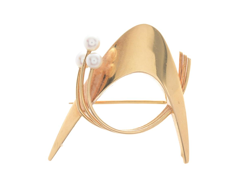 BROSCH, 18K guld, 3 sötvattenspärlor, Södertälje år 1963, mått 3 x 2,1 cm, vikt ca 3,4 g.