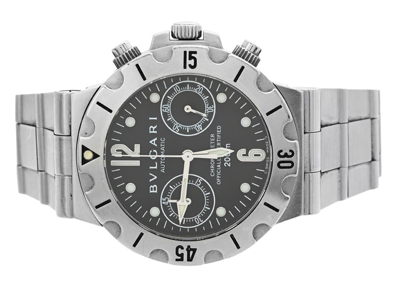BVLGARI, Diagono Scuba (200 m, S Swiss Made S), Chronometer, Cal ETA 2892 A2, Verk nr. 00403, Serie nr. L 5437, Ref nr. SCB 38 S, kronograf, herrur, 38 mm, stål, automatisk, safirglas (nagg), integrerad originallänk, viklås, längd 178 mm, ca 2000.
