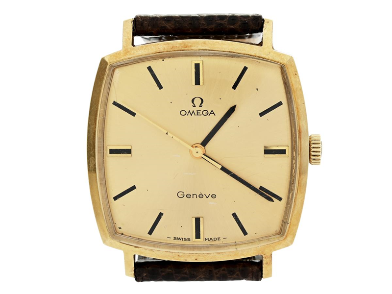 OMEGA, Genève, Cal 601, Serie nr. 31260506, Ref nr. BA 131.022, Boett nr. 131.022, herrur, 31 x 31 mm, 18K guld, manuell, plexiglas, skadad urtavla, läderband, ca 1969.