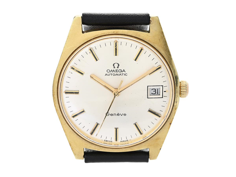 OMEGA, Genève (-Swiss Made-), Cal 565, Serie nr. 31466529, Ref nr. MD 166.041, Boett nr. 166.041 (LL), herrur, 34,5 mm, doublé (20 micron), automatisk, plexiglas, datum, servicebehov, gravyr, läderband, ca 1969.