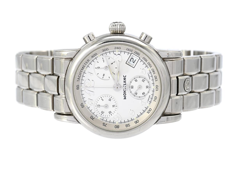 MONTBLANC, Meisterstück, "Tachymeter", Cal 4810.106, Serie nr. PL313762, Boett nr. 7039, kronograf, damur, 31 mm, stål, quartz, safirglas, datum, originallänk, viklås, ca 2000, box.