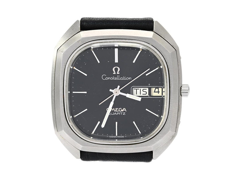 OMEGA, Constellation, Cal 1310, Serie nr. 39976590, Ref nr. ST 196.0060, Boett nr. 196.0060 / 8321, herrur, 38 x 35,5 mm, stål, quartz, plexiglas, dag (svenska), datum, läderband, ca 1976.