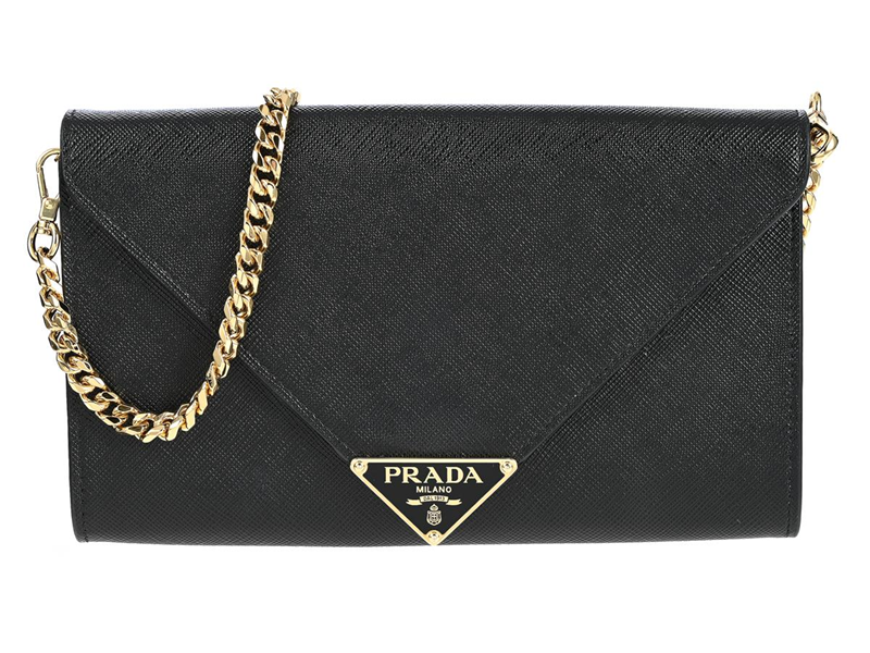 PRADA, VÄSKA, Lux Envelope Wallet On Chain, svart Saffiano läder, guldfärgade beslag, 20x11x2 cm, avtagbar kedja, avtagbart läderhandtag, dustbag, originalkartong. Excellent Condition.