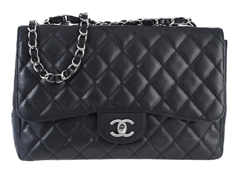 CHANEL, VÄSKA, Jumbo Single Flap Bag, svart quiltat kaviarläder, silverfärgade beslag, 30x20x8,5 cm, hologrammärkt 11964710, år 2006-2008. Good Condition.