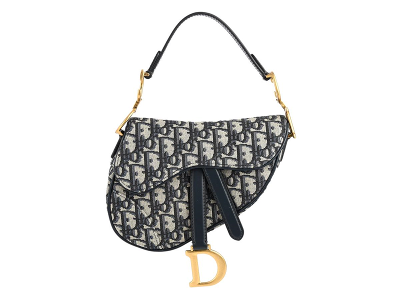 DIOR, VÄSKA, Mini Saddle bag, blå canvas monogram, blått läder, guldfärgade beslag, 18x12,55x4 cm, märkt 05RU 1204, år 2014, avtagbar axelrem. Excellent Condition.