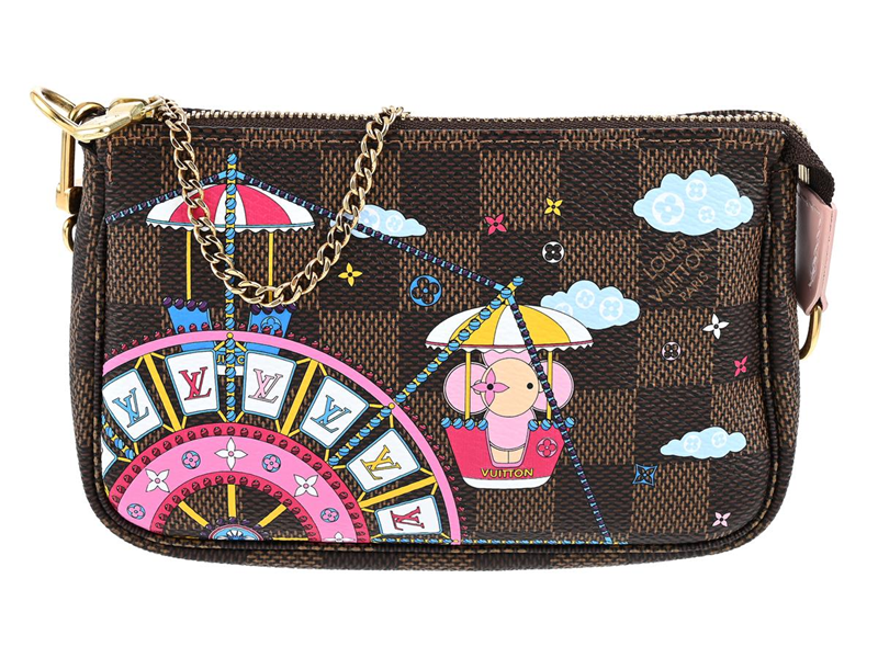 LOUIS VUITTON, VÄSKA, Mini Pochette Accessories, Vivienne Christmas 2020, Damier Ebene, guldfärgade beslag, 14,5x9,5x2,5 cm, märkt SF3260, år 2020. Excellent Condition.