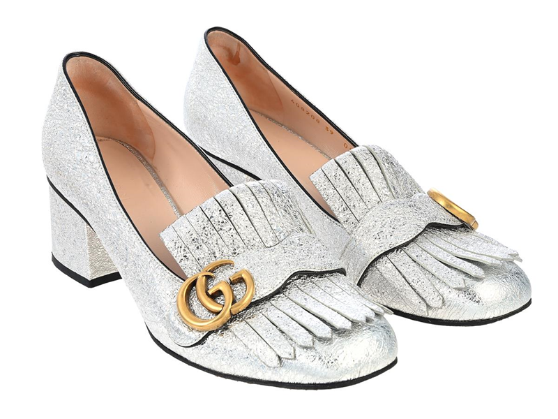 GUCCI, SKOR, Metallic GG Marmont Pumps, silverfärgat läder, guldfärgade beslag, klack 6 cm, stl 39, dustbag, slitage på sula. Good Condition.