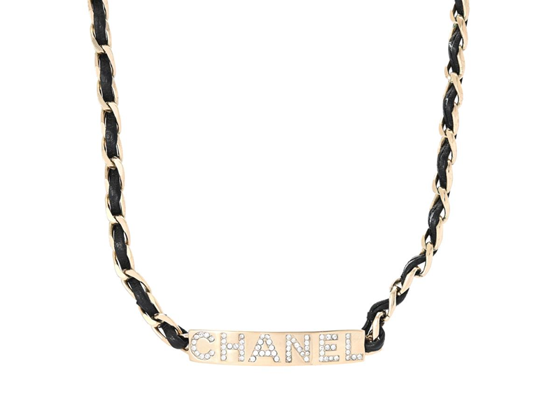 CHANEL, COLLIER, Choker, guldfärgad metall, svart läder, längd 31-38 cm, märkt B20, B, år 2020, Made in Italy, smyckespåse, originalask. Very Good Condition.