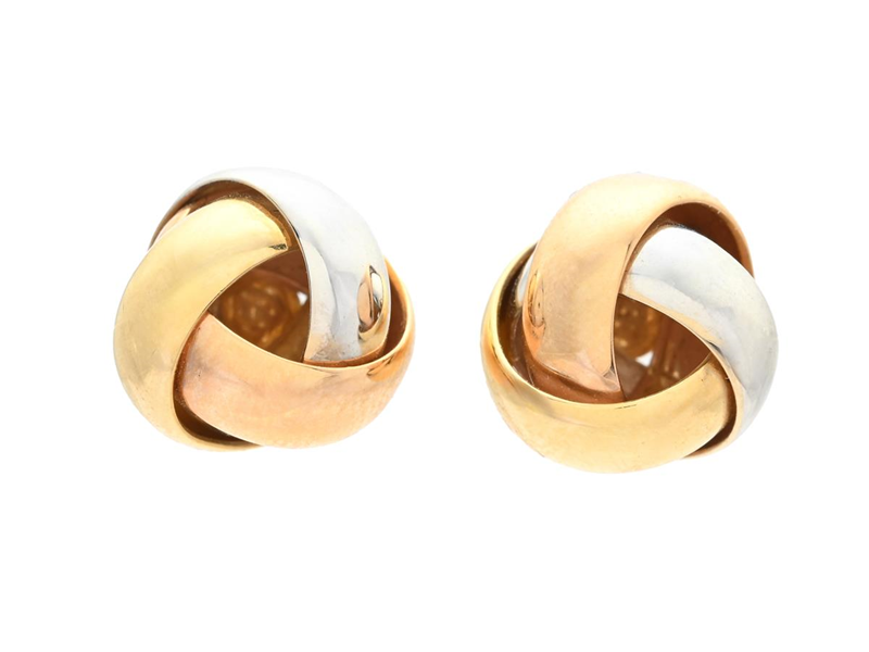 ÖRHÄNGEN, 18K guld/vitguld/roséguld, knutar, stift, mått ca 12 mm, vikt 5,5 g.