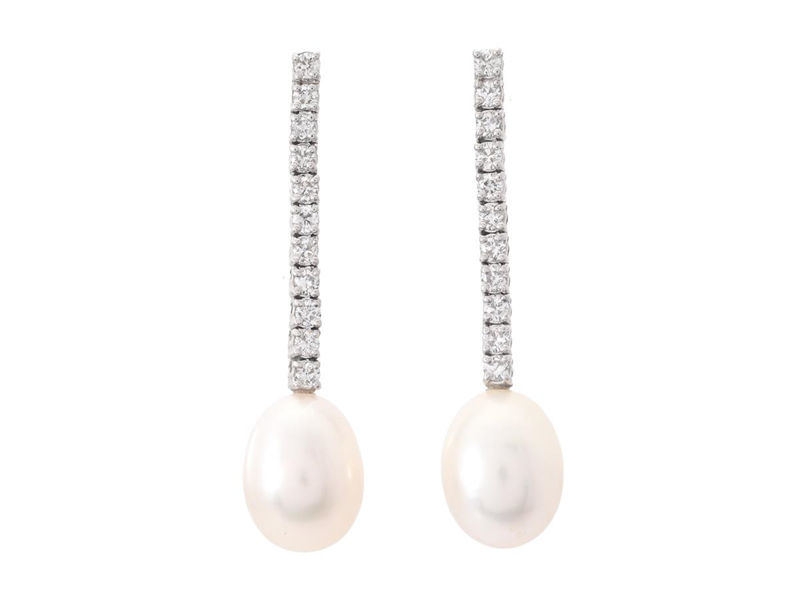PÄRLÖRHÄNGEN, 18K vitguld, odlade sötvattenspärlor ca 11x9 mm, 22 briljantslipade diamanter ca 0,66 ctv, ca W/VS, höjd 37 mm, vikt 5,5 g, stift.
