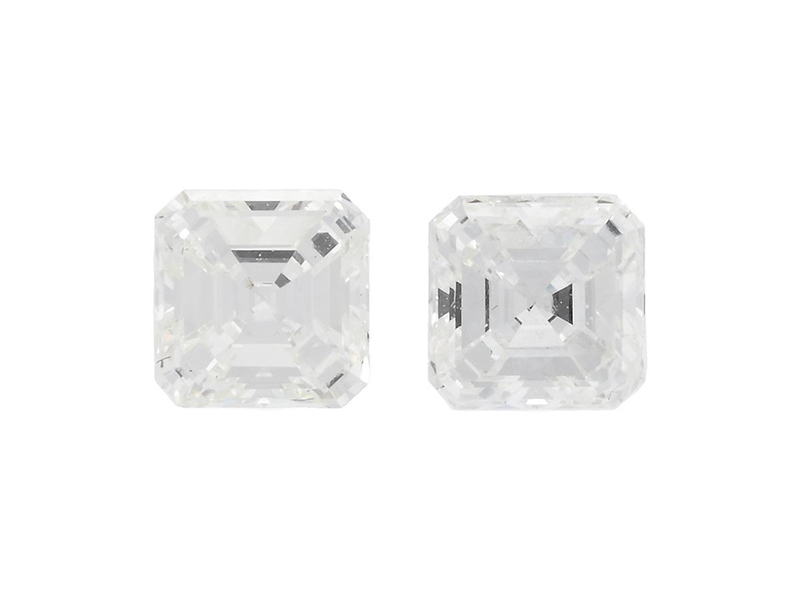 2 ST DIAMANTER, asscherslipade, 0,63 ctv, ca W/VS.