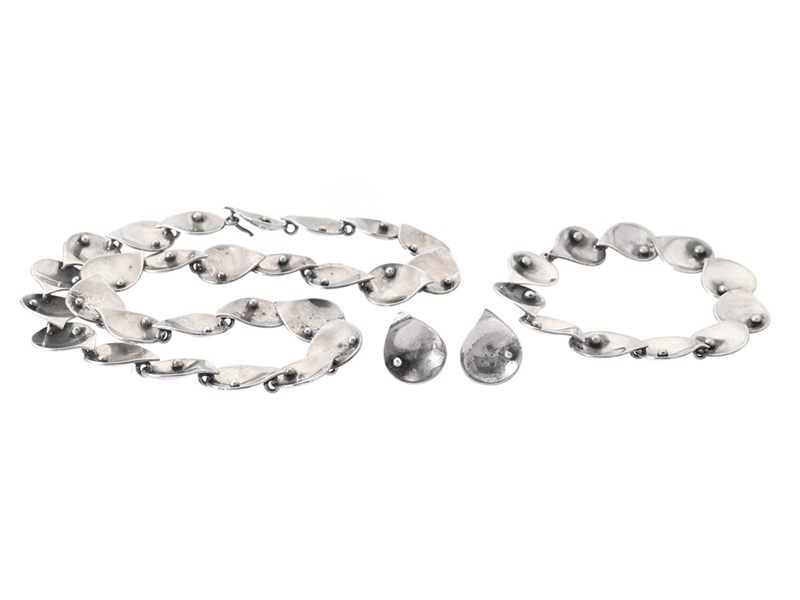 ENGELBERT, smyckesset, collier, armband, örhängen, silver, Sigurd Persson, Stockholm 1954, ländd 43 cm samt 18 cm, stift, vikt 76,4 g.