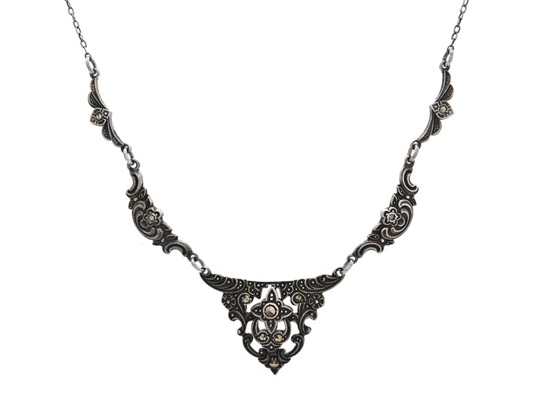 COLLIER, silver, markasiter, längd 41,5 cm, vikt 5,9 g.