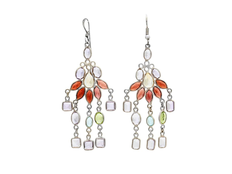 ÖRHÄNGEN, sterlingsilver, granat, citrin, ametist, akvamarin, peridot, krokar, höjd ca 74 mm, vikt 9,4 g, något svaga fattningar, nagg.