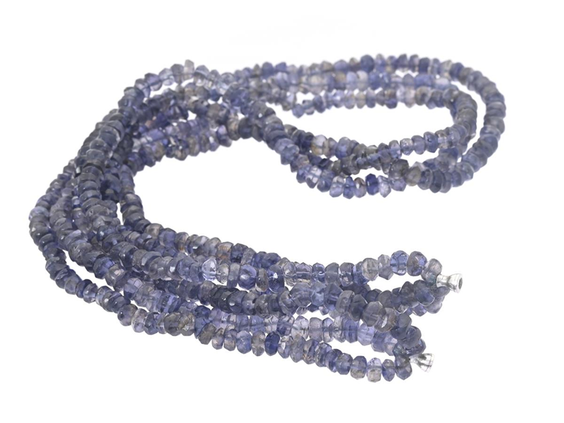 COLLIER, fasetterade ioliter, 3 - radig, längd 40 cm, vikt 37,2 g, dobbar, passar Lynggaard-lås.