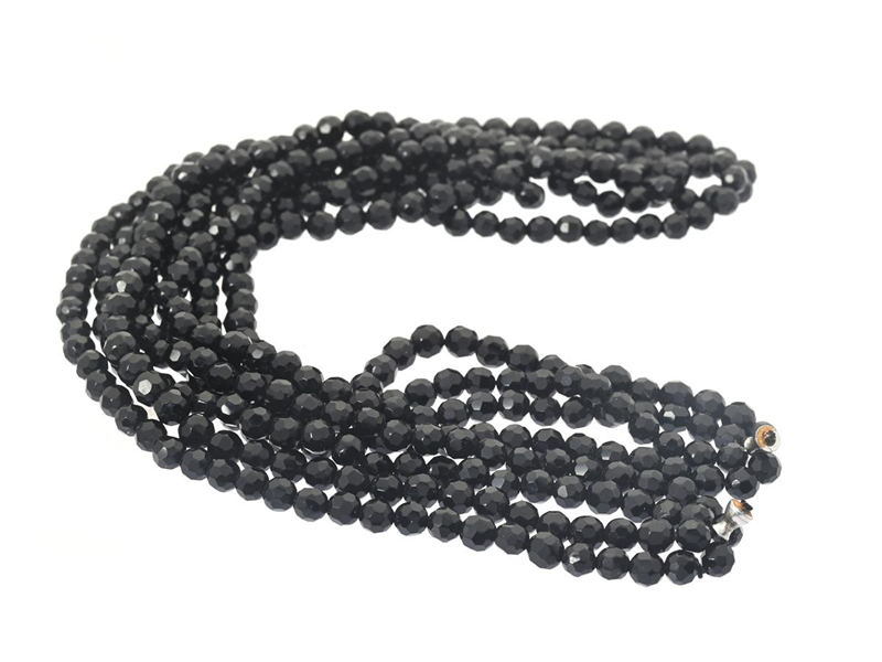 COLLIER, fasetterade onyx, 4-radig, längd 39 cm, vikt 35,2 g, dobbar, passar Lynggaard-lås.