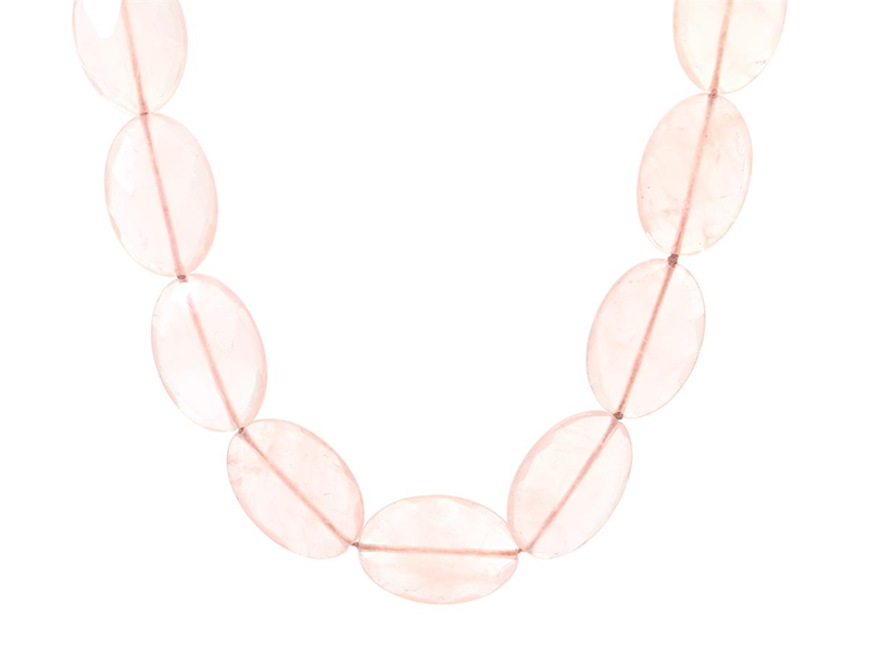 SANDSTRÖM & DE WIT, collier, sterlingsilver, platta rosenkvarts kulor, längd 43,5 cm, vikt 76,6 g, originaletui, slitna fasettkanter och skador på stenarna.