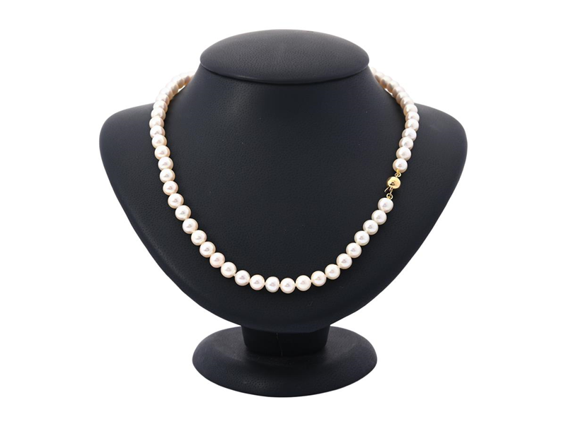 PÄRLCOLLIER, odlade pärlor ca 6,8-7,1 mm, lås i 18K guld, längd 44 cm, vikt 27,3 g.
