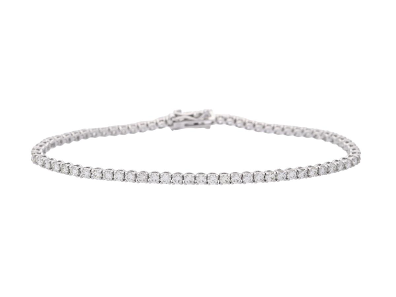 TENNISARMBAND, 18K vitguld, briljantslipade diamanter ca 2,25 ctv, ca W-TCa(G-K)/VS-SI, längd 16 cm, vikt 5,8 g.
