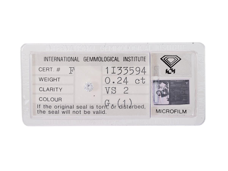 DIAMANT, briljantslipad, 0,24 ct, G/VS2, IGI certifikat F1I33594, förseglat.