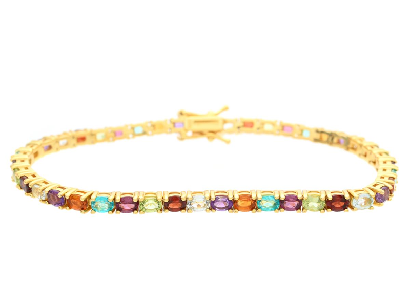 ARMBAND, förgyllt sterlingsilver, diverse enklare färgstenar ovalslipade, längd 18 cm, vikt 11,4 g, stenar med nagg.