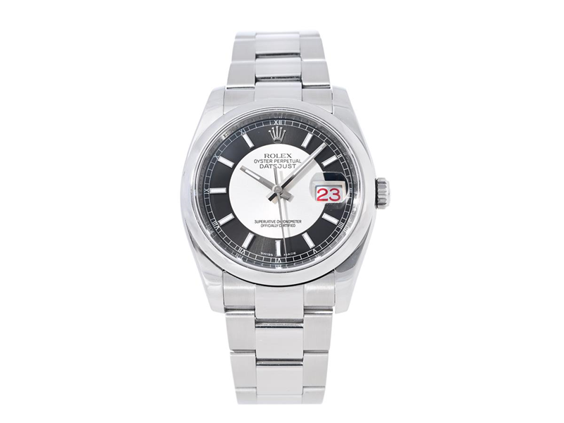 ROLEX, Oyster Perpetual, Datejust, Chronometer, s.k. "Tuxedo Dial", Ref nr. 116200, Serie nr. M638133, Cal 3135, Verk nr. 3 231315, Boett nr. 2080, herrur, 36 mm, stål, automatisk, safirglas, datum (Roulette), utbytt urtavla ("Tuxedo") Oysterlänk, viklås (Easylink), Ref nr. 72200-PJ4, servad juni 2025, cert, oktober 2008, box.