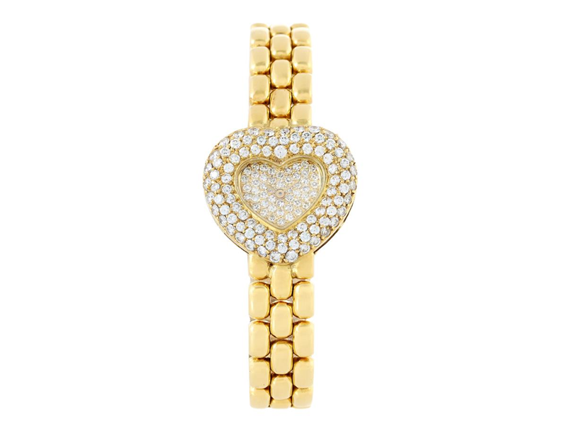 CHOPARD, Geneve, Happy Diamonds "Heart", Serie nr. 433772, Boett nr. 535 1 / 10/5550, damur, 22 mm, 18K guld, quartz, safirglas, diamanter på urtavlan (49 st. 8/8), briljanter på boetten (88 st. TW/VVS, ca 1,50 ctv), integrerad originallänk, längd 165 mm, totalvikt 54,3 gram, ca 2000.