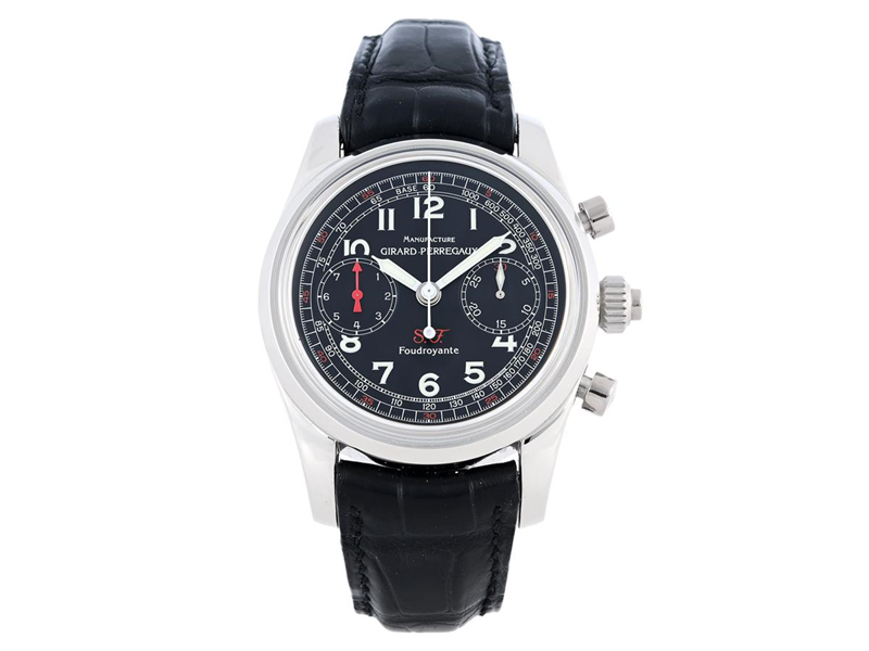 GIRARD-PERREGAUX, Ferrari "S.F.", Cal GP E04C0, Serie nr. 94/100, Ref nr. 9020, kronograf (Foudroyante/jumping seconds), herrur, 40 mm, platina, automatisk, safirglas, läderband, viklås i 18K vitguld, ca 2000, box (skadad), ytterkartong (skadad). Limiterad och numrerad (Nr. 94/100).