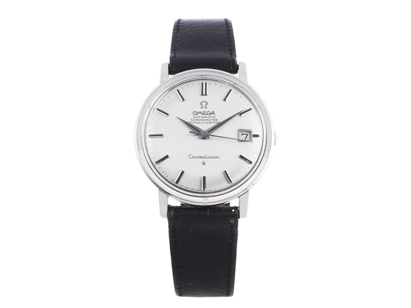 OMEGA, Constellation, Calendar (Swiss Made), Chronometer, Cal 561, Serie nr. 24482564, Ref nr. BC 168.004, Boett nr. 168.004/14, herrur, 35,5 mm, 18K vitguld, automatisk, plexiglas, datum, läderband, originalspänne i stål, ca 1966.